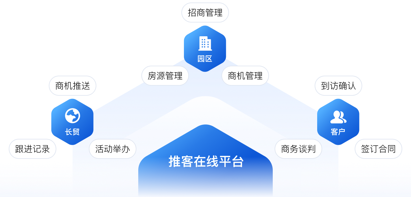我们帮助连接园区和客户,通过招租房源展示、活动举办与商机管理,轻松管理招商资源并促进招商。 我们拥有专业的产业招商团队,提供专业的产业招商服务。